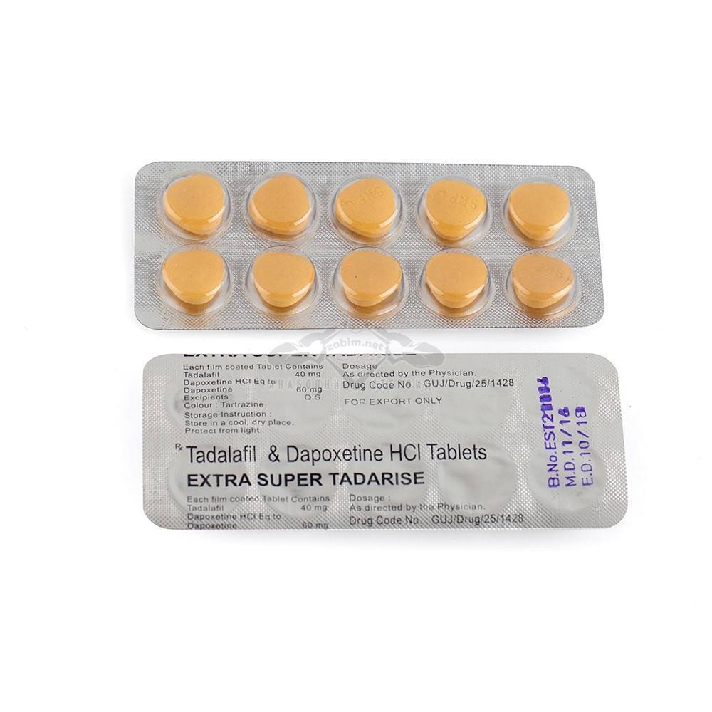 Extra Super Tadarise est un médicament utilisé pour traiter deux problèmes sexuels masculins, la dysfonction érectile (ED) et l'éjaculation précoce (PE). Il aide à améliorer le flux sanguin vers le pénis, conduisant à de meilleures érections chez les hommes. La Dapoxetine est un inhibiteur sélectif du recaptage de la sérotonine (SSRI) qui aide à retarder l'éjaculation et est utilisée pour traiter l'éjaculation précoce chez les hommes.Substance Active