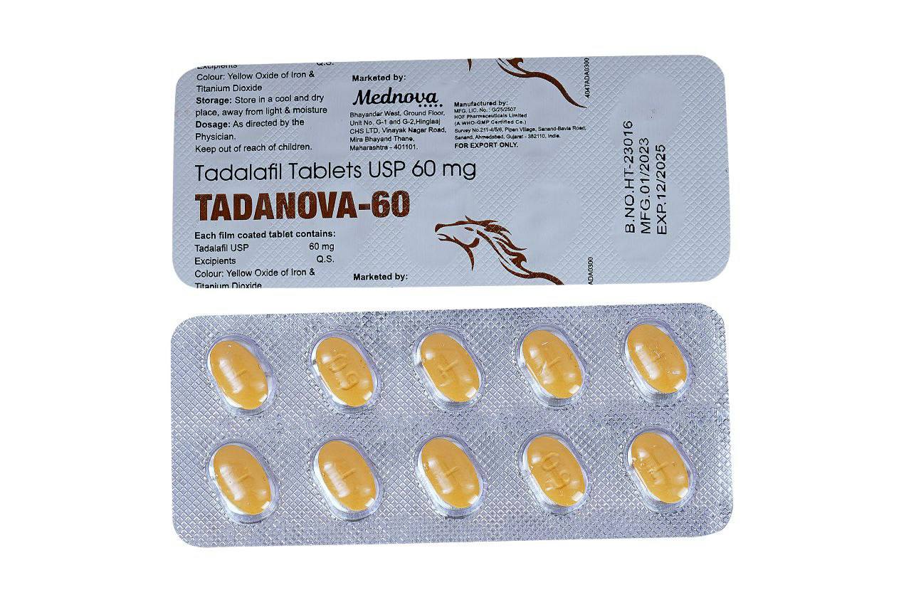 - Tadanova 60mg est un médicament efficace utilisé pour traiter la dysfonction érectile chez les hommes.