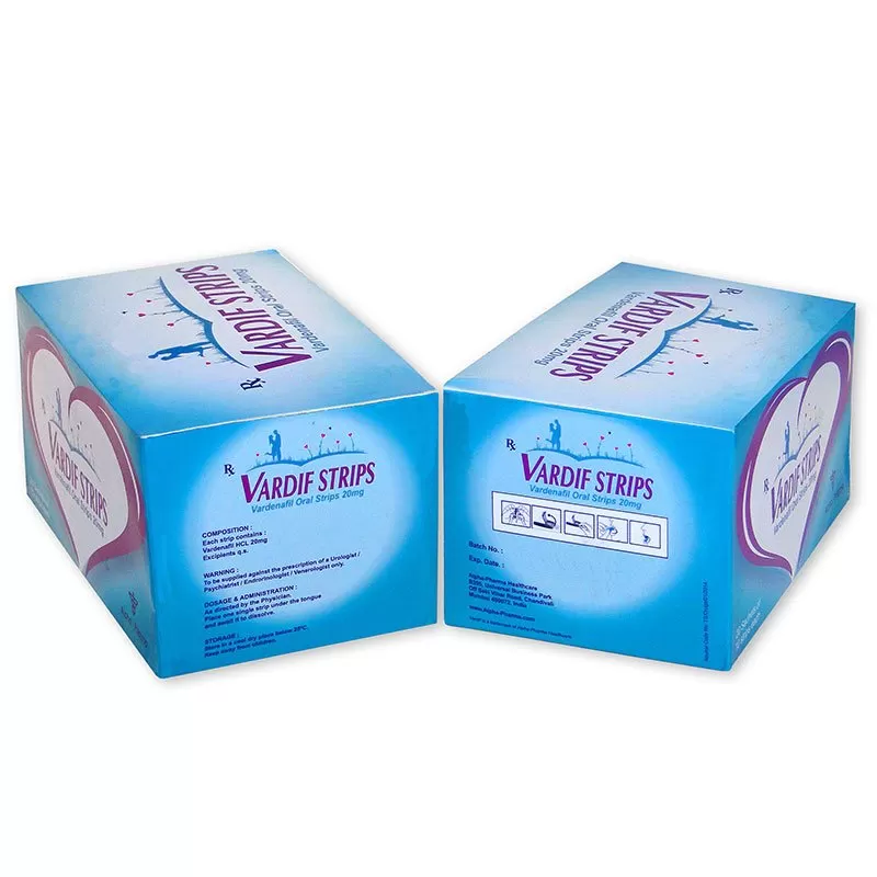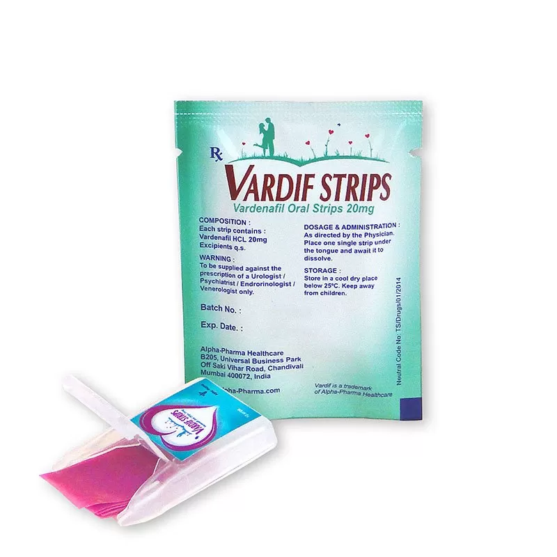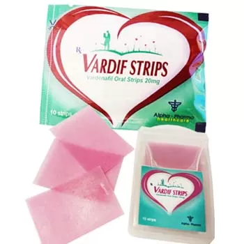 Les Vardif oral strips 20 mg sont rapidement absorbées et commencent donc à fournir l'effet médical dans les 15 minutes. L'érection peut être réalisée rapidement après la stimulation sexuelle appropriée. L'effet dure jusqu'à 4 heures après la prise de la dose. Les Vardif oral strips sont fabriquées par Alpha-Pharma Healthcare dans.