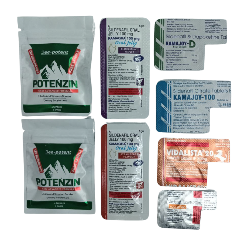 Kamajoy D (5 comprimés) – Une formule double action associant le sildénafil et la dapoxétine, idéale pour ceux qui souhaitent à la fois une meilleure érection et un contrôle de l’éjaculation précoce.