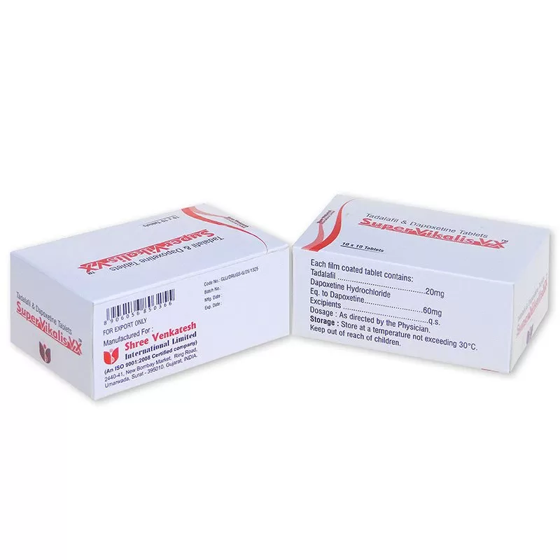 Le Super Vikalis VX 80mg est un médicament générique composé de 20mg de Tadalafil (Cialis amélioré) associé à 60 mg de Dapoxétine, très efficace pour traiter l’éjaculation précoce et les dysfonctionnements érectiles.